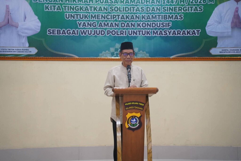 Kolaka Timur, OBORSULTRA.id – Pemerintah Daerah (Pemda) Kabupaten Kolaka Timur (Koltim) turut menghadiri kegiatan buka puasa bersama yang digelar di Aula Tantya Sudhirajati Polres Koltim, Kelurahan Rate-rate, Kecamatan Tirawuta, Senin sore (16/03/2026).
