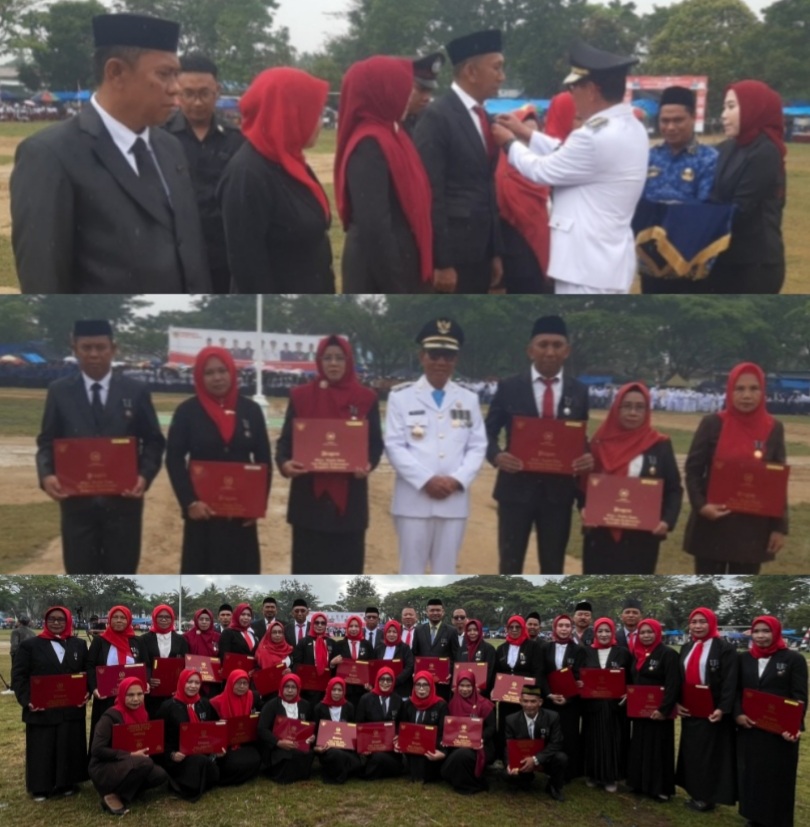 Kegiatan perayaan HUT RI ke- 80 tadi pagi, dilakukan penyerahan piagam penghargaan gelar, tanda jasa dan tanda kehormatan dari Presiden RI kepada sejumlah aparatur sipil negara (ASN), dalam penganugerahan atas tanda kehormatan Satyalancana Karya Satya.