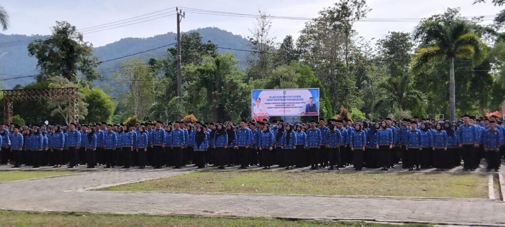 Dalam sambutannya, Bupati Yosep Sahaka menyampaikan bahwa ASN memiliki peran strategis sebagai pelaksana kebijakan publik dan pelayan masyarakat sebagaimana diatur dalam Undang-Undang Nomor 20 Tahun 2023 tentang Aparatur Sipil Negara. Selain PNS, PPPK baik penuh waktu maupun paruh waktu merupakan bagian penting dalam mendukung penyelenggaraan pemerintahan dan pembangunan daerah.