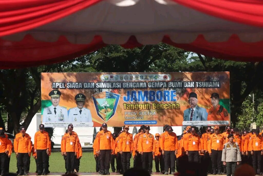 Kendari, OBORSULTRA.ID – Pelaksana Tugas Bupati Kolaka Timur (Koltim), H. Yosep Sahaka, S.Pd., M.Pd., menghadiri Apel Siaga dan Simulasi Bencana Gempa Bumi dan Tsunami pada rangkaian Jambore Tangguh Bencana Provinsi Sulawesi Tenggara (Sultra) 2025 yang berlangsung di Kota Kendari, 21–24 November 2025. Ia hadir bersama Kepala BPBD Kolaka Timur, Dewa Made Ratmawan, S.ST., M.T., beserta jajaran.