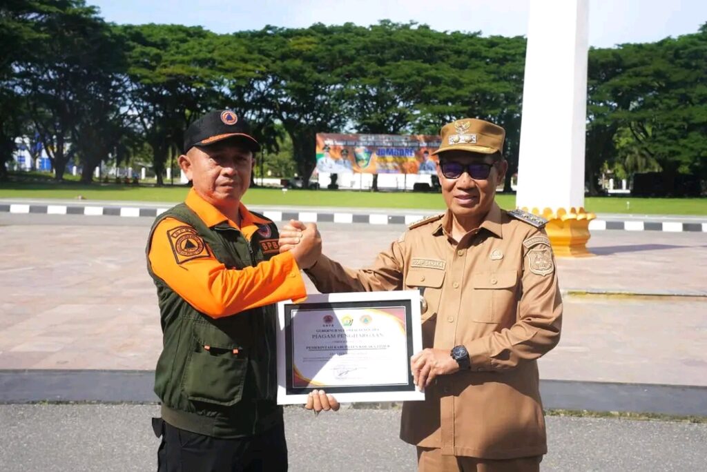 Pada kesempatan tersebut, Pemerintah Kabupaten Kolaka Timur juga menerima Piagam Penghargaan atas terbentuknya Desa Tangguh Bencana di wilayah Koltim. Penghargaan ini diberikan langsung oleh Gubernur Sultra sebagai bentuk apresiasi terhadap upaya Pemkab Koltim dalam membangun ketangguhan masyarakat dalam mengelola risiko bencana secara mandiri dan berkelanjutan.