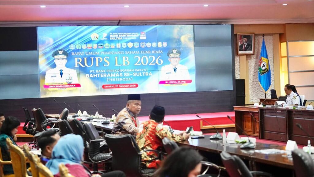 Kendari, OBORSULTRA ID – PT. Bank Perekonomian Rakyat (BPR) Bahteramas Sulawesi Tenggara (Perseroda) menggelar Rapat Umum Pemegang Saham Luar Biasa (RUPS-LB) sebagai langkah strategis dalam memperkuat kinerja dan arah kebijakan perusahaan guna meningkatkan kontribusi terhadap pertumbuhan ekonomi daerah. Kegiatan tersebut berlangsung di Kendari, Selasa (25/02/2026).