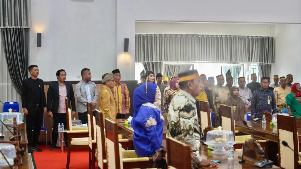 Rapat Paripurna tersebut dipimpin langsung oleh Ketua DPRD Koltim, Hj. Jumhani, S.Pd, didampingi Wakil Ketua Aris Prasetyo. Turut hadir Plt Bupati Kolaka Timur H. Yosep Sahaka, S.Pd., M.Pd, Plt Ketua TP PKK Koltim Hj. Hijrahwati Yosep Sahaka, unsur Forum Koordinasi Pimpinan Daerah (Forkopimda), para anggota DPRD Koltim, pimpinan Organisasi Perangkat Daerah (OPD), tokoh masyarakat, tokoh adat, tokoh pemuda, serta tamu undangan lainnya.