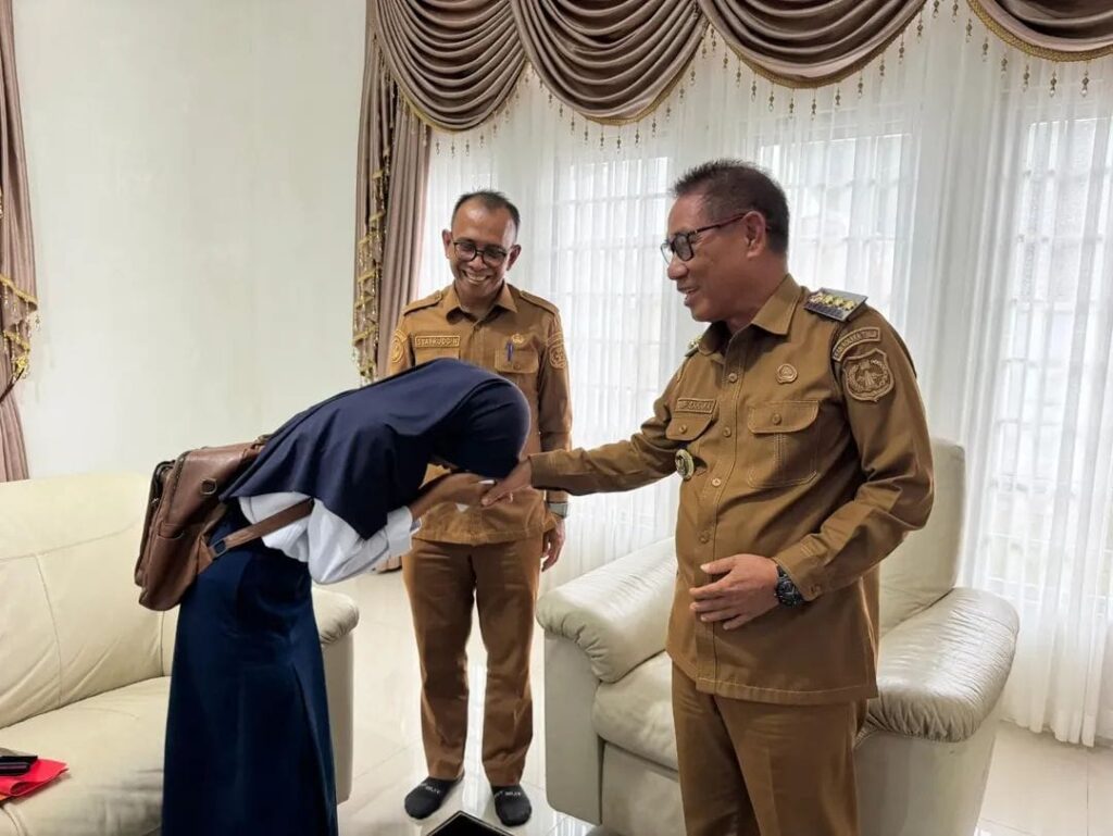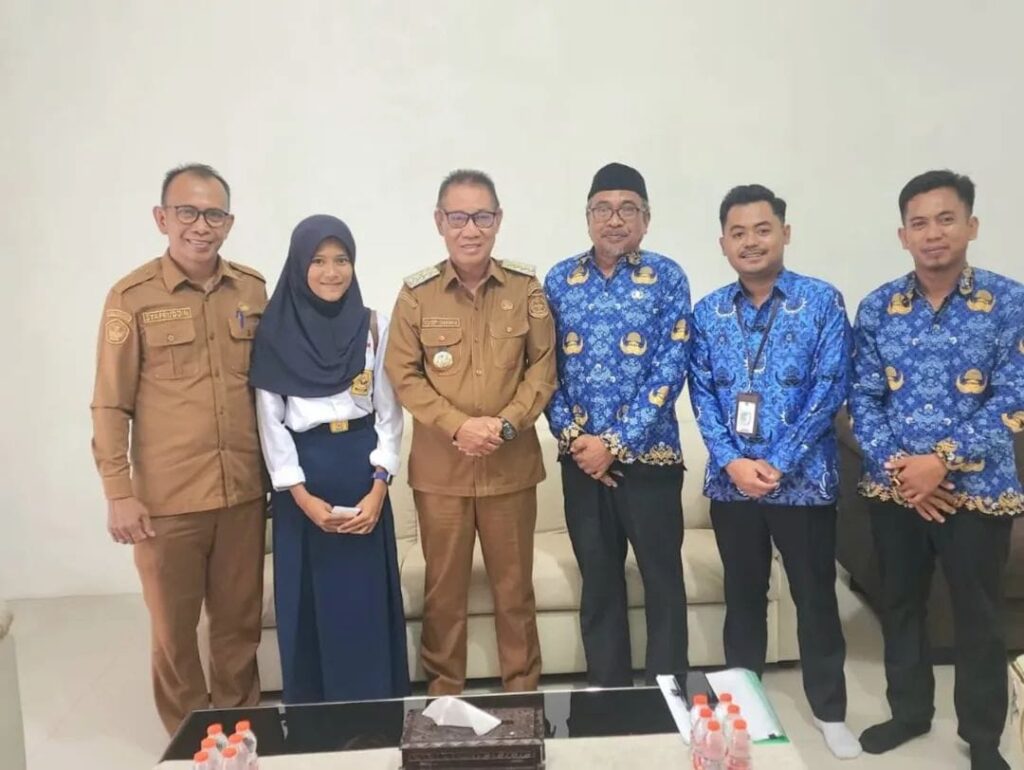 Kolaka Timur, OBORSULTRA.ID – Pelaksana Tugas (Plt.) Bupati Kolaka Timur, H. Yosep Sahaka, S.Pd., M.Pd., didampingi Kepala Dinas Pendidikan dan Kebudayaan Kolaka Timur, Drs. Syafruddin, M.Pd., memberikan dukungan doa serta motivasi kepada Septiani, siswi SMPN 1 Lambandia yang akan mewakili Kabupaten Kolaka Timur dan Provinsi Sulawesi Tenggara pada ajang bakat Bintang Sobat SMP tingkat nasional di Jakarta, pada 26–29 November 2025 mendatang.