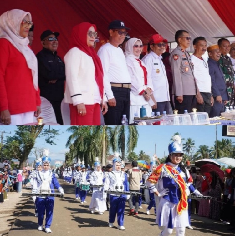 Kolaka Timur, OBORSULTRA.ID – Pelaksana Tugas (Plt) Bupati Kolaka Timur (Koltim), Provinsi Sulawesi Tenggara (Sultra), H Yosep Sahaka S Pd M Pd didampingi Ibu TP-PKK Koltim Hj Hijrawati Yosep Sahaka dipanggung penghormatan dan menyambut barisan peserta gerak jalan dalam menyambut dan memeriahkan HUT RI ke- 80, tepatnya depan Polsek Lambandia Kelurahan Penanggo Jaya pada, Rabu (13/08/2025).
