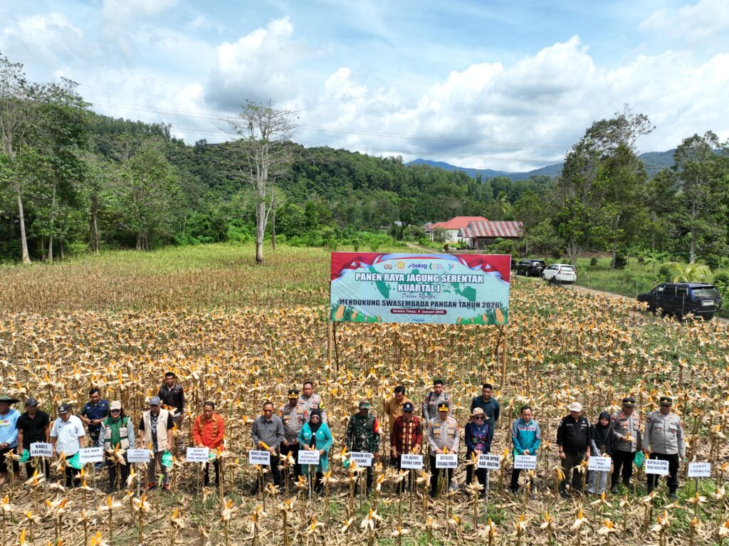 Kolaka Timur, OBORSULTRA.ID — Kepolisian Resor (Polres) Kolaka Timur menggelar panen raya jagung serentak Kuartal I Tahun 2026 sebagai bentuk dukungan terhadap program swasembada pangan nasional tahun 2026.