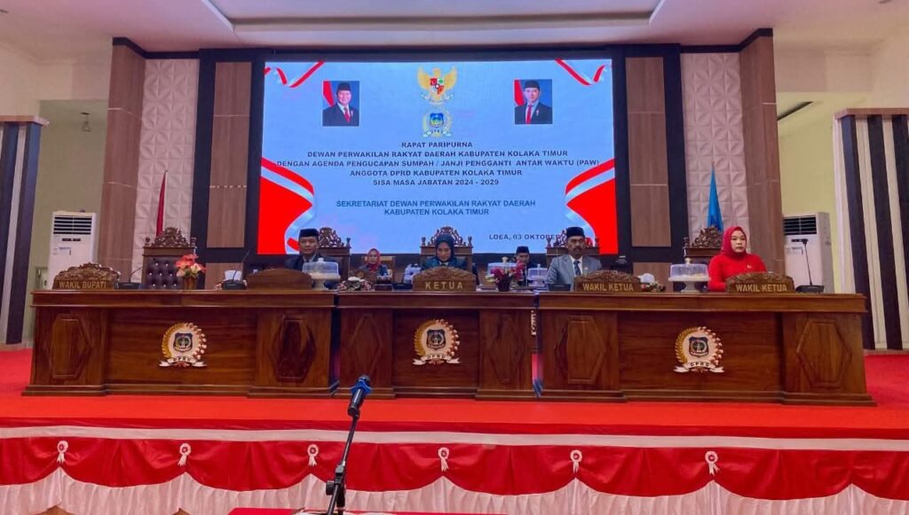 Kolaka Timur – OBORSULTRA.ID – Dewan Perwakilan Rakyat Daerah (DPRD) Kabupaten Kolaka Timur menggelar Rapat Paripurna dalam rangka pengucapan sumpah/janji Pengganti Antar Waktu (PAW) anggota DPRD untuk sisa masa jabatan 2025–2029. Agenda resmi tersebut dilaksanakan pada Jumat (tanggal pelaksanaan) di ruang sidang utama DPRD Kolaka Timur.