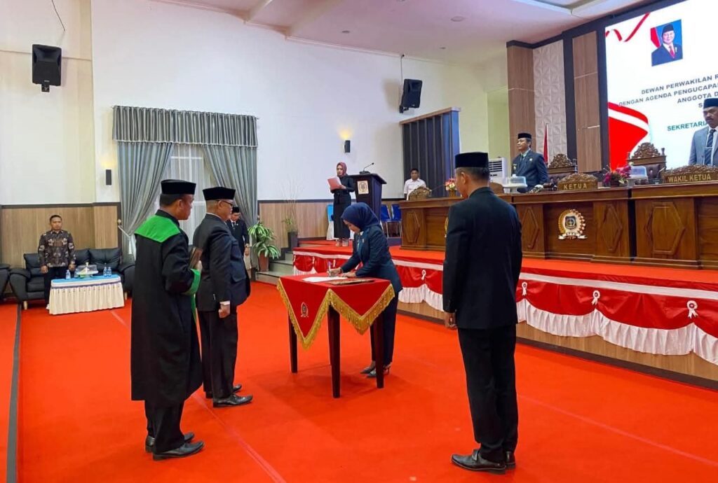 Prosesi pelantikan dan pengucapan sumpah/janji dilakukan sesuai ketentuan perundang-undangan serta tata tertib DPRD, disaksikan oleh seluruh peserta rapat dan tamu undangan.